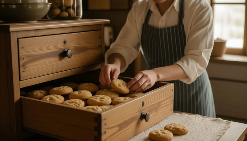 - «Сухое к сухому». Сдобное печенье, песочные корзиночки, безе, хлебные хрустящие хлебцы и гренки, наоборот, требуют хранения в тканевых мешочках или бумажных пакетах. В герметичной таре они отсыреют, потеряют свой фирменный хруст и могут заплесневесть.